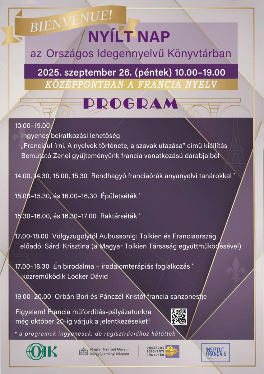 Szeretettel várunk minden érdeklődőt az Országos Idegennyelvű Könyvtár nyílt napján, ahol a francia nyelv kerül a középpontba.