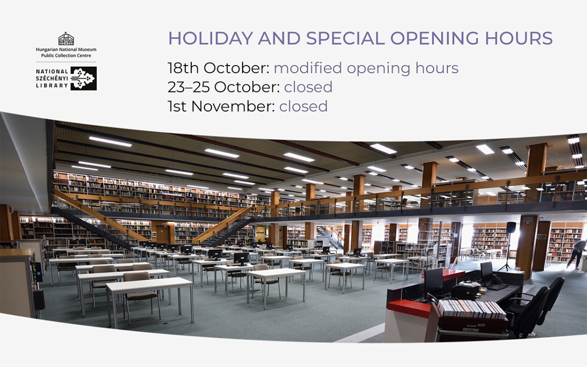 We kindly inform our readers and visitors that our library will be open on 18th October, between 23rd and 25th October, and on 1st November 2025 as follows: