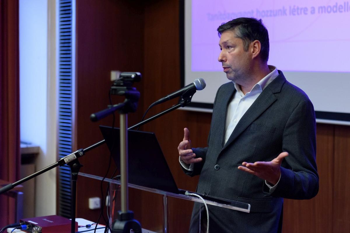 A nyelvtechnológiai kutatások szempontjait mutatta be Sárossy Bence (ELTE Nyelvtudományi Kutatóközpont) Milyen magyar nyelvet tanul meg a mesterséges intelligencia? – Az internet tartalma mint tanítóanyag című előadásával. Részletesen ismertette a PULI nyelvmodellcsalád 70 milliárd szavas tanítókorpuszának összeállítási folyamatát, az internetes adatgyűjtés kihívásait, valamint az adattisztítási és előfeldolgozási lépéseket, amelyek lehetővé tették a ChatPULI fejlesztését.
