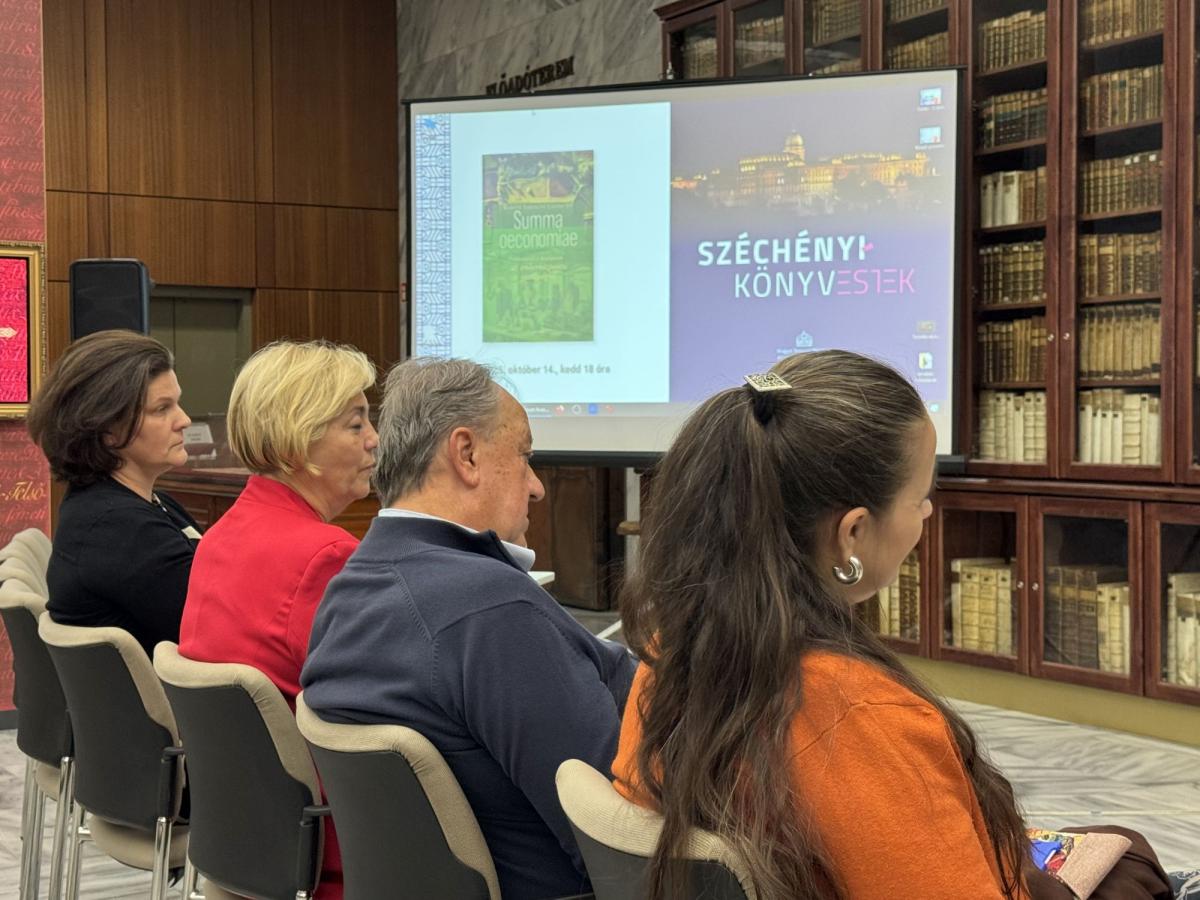 2025. október 14-én rendeztük meg a Széchényi-könyvestek második beszélgetését. Vendégünk volt Baritz Sarolta Laura közgazdász, domonkos szerzetes, a Summa oeconomiae című könyv elsődleges szerzője és Regéczy-Béres Melinda, a Béres Gyógyszergyár Zrt. kommunikációs igazgatója, egyike annak a tizennégy cégvezetőnek, akivel a szerző interjút készített, jó gyakorlatokkal támasztva alá a mű elméleti megállapításait.