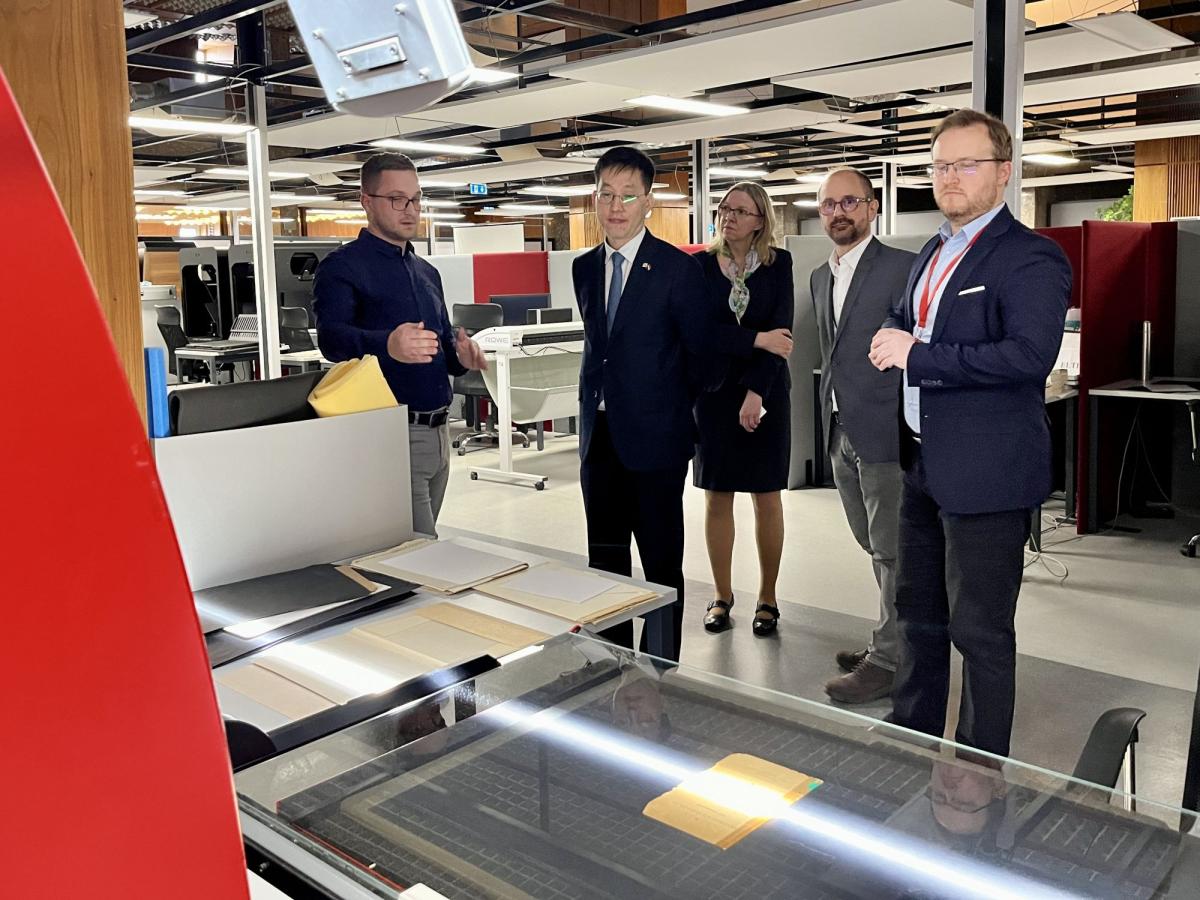 Hvang Von minisztertanácsos megtekintette a nemzeti könyvtár épületét, állandó kiállítását, valamint az OSZK digitalizáló központját, betekintést nyerve a könyvtár sokrétű szakmai tevékenységébe.