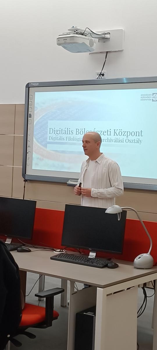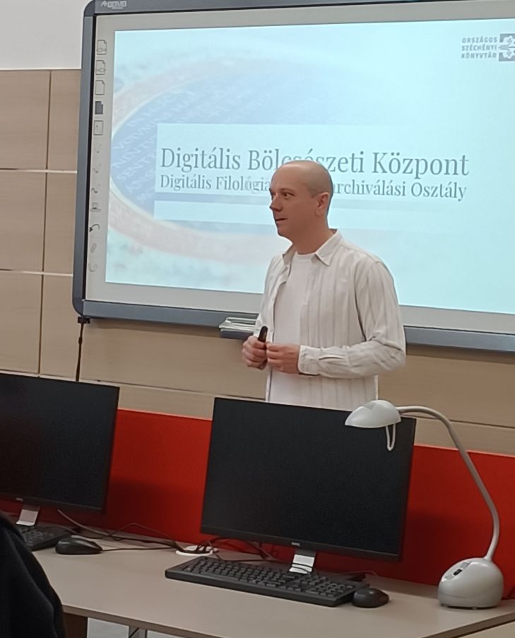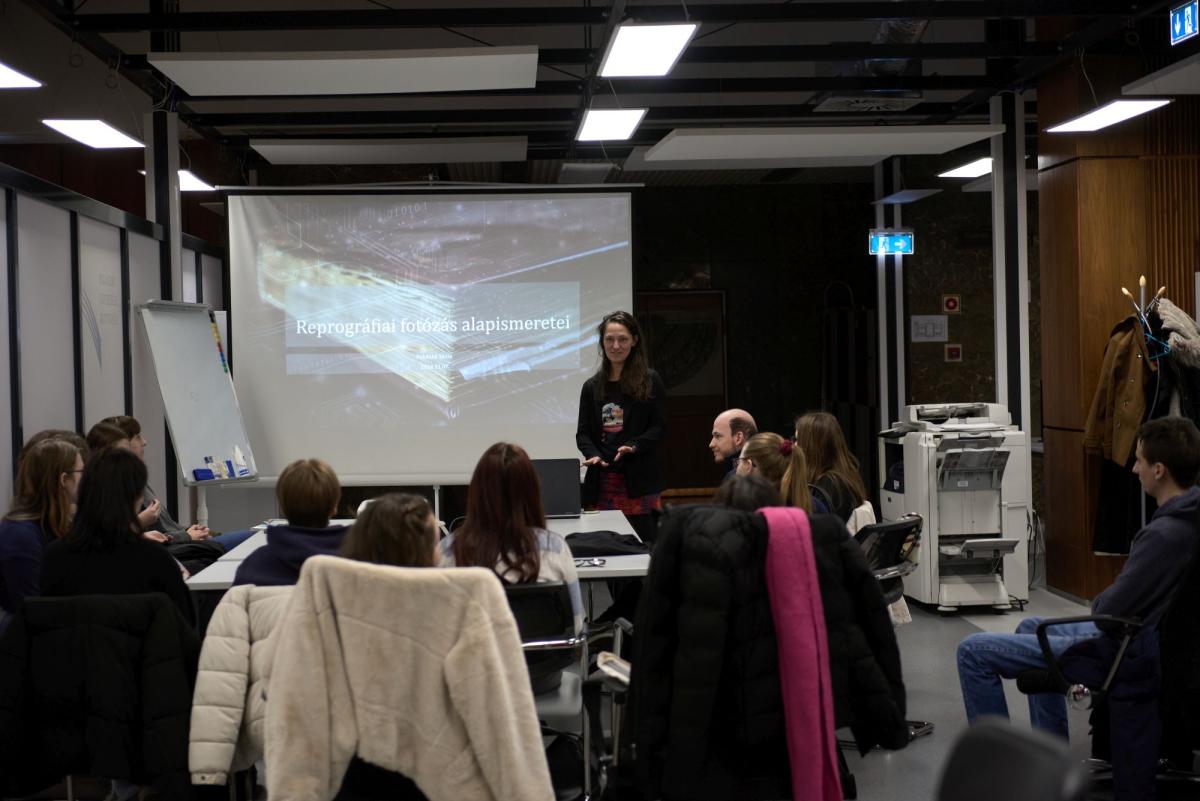 Az OSZK és az ELTE BTK Könyvtár- és Információtudományi Intézete (KITI) közötti szakmai együttműködés eredményeképpen az ELTE BTK harmadéves informatikus könyvtáros hallgatói a 2025–2026-os tanév őszi félévében is több alkalommal nyerhettek betekintést könyvtárunk digitalizálási munkafolyamataiba a Digitális gyűjtemények fejlesztése című tanegység részeként. A foglalkozásokat Radó Rita tanárnő, a KITI oktatója és a nemzeti könyvtár munkatársa vezette az OSZK szakembereinek aktív bevonásával.