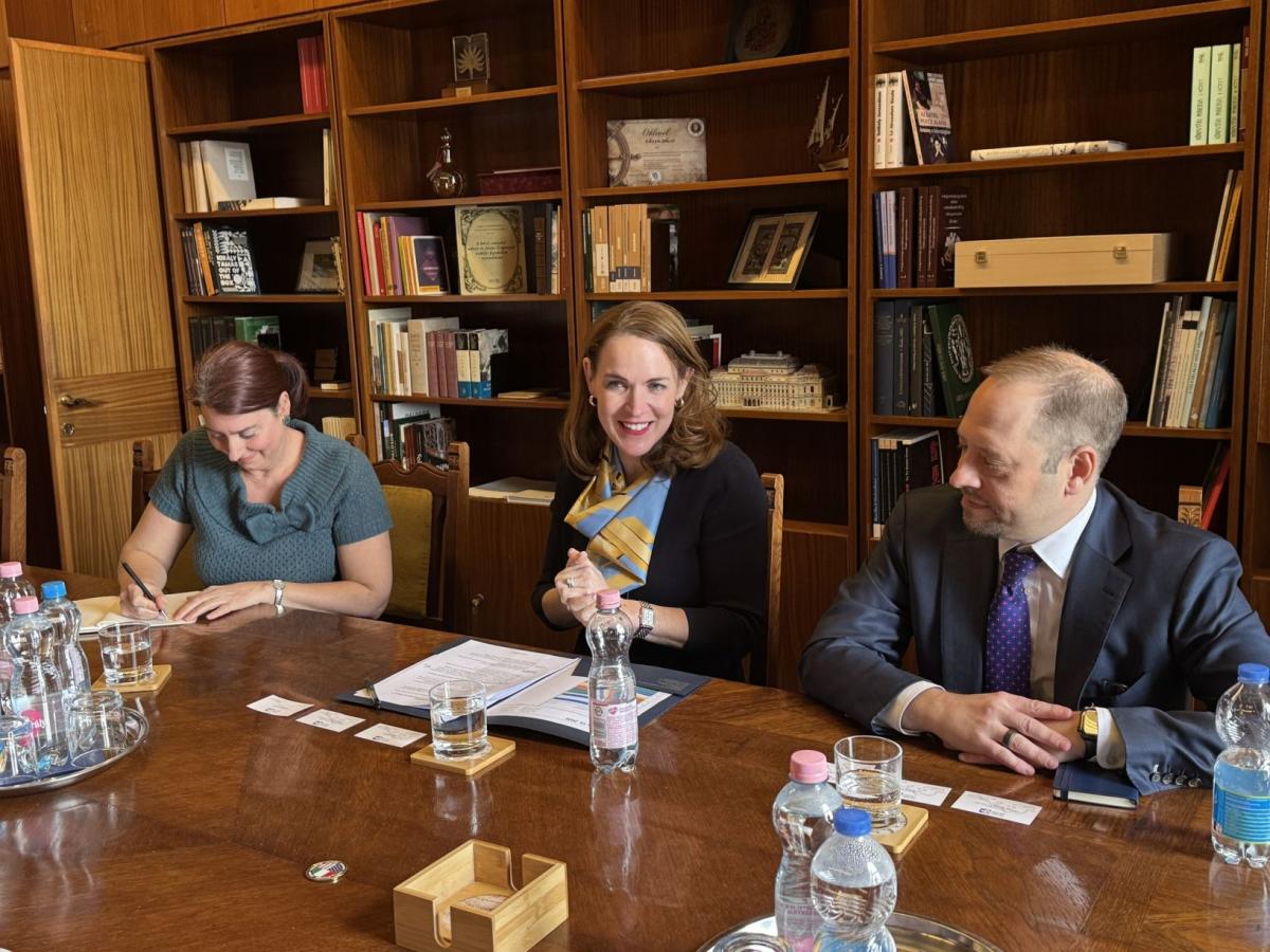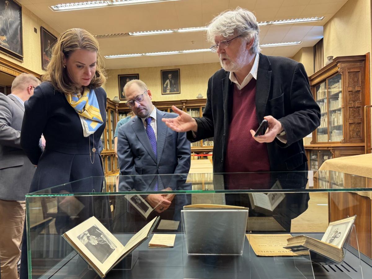 Az egyeztetésen áttekintették az Országos Széchényi Könyvtár közelmúltban megvalósult és 2026-ra tervezett amerikai vonatkozású projektjeit. A látogatás ezt követően a könyvtár épületének bejárásával folytatódott, amelynek során az amerikai vonatkozású dokumentumok kerültek a középpontba. Az Apponyi-teremben Nóvé Béla, az OSZK Kutatási és Különgyűjteményi Főosztályának munkatársa mutatta be az Egyesült Államok történelméhez kapcsolódó könyvek válogatását.