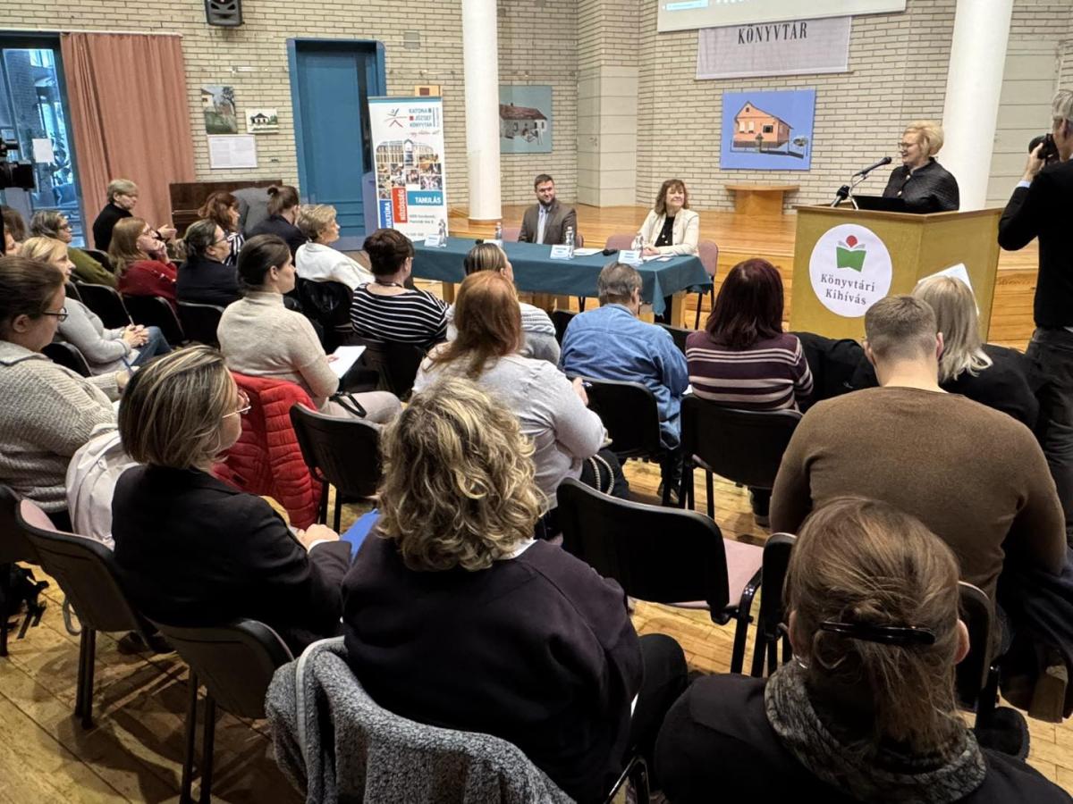 A Könyvtári Kihívás pályázat tájékoztató rendezvényeinek első állomásán, Kecskeméten Vincze Máté innovációért és kulturális fejlesztésekért felelős helyettes államtitkár, Gerencsér Judit, a nemzeti könyvtár főigazgató-helyettese és Bajnok Tamara, a Könyvtári Intézet osztályvezetője tájékoztatta a térség könyvtárosait.