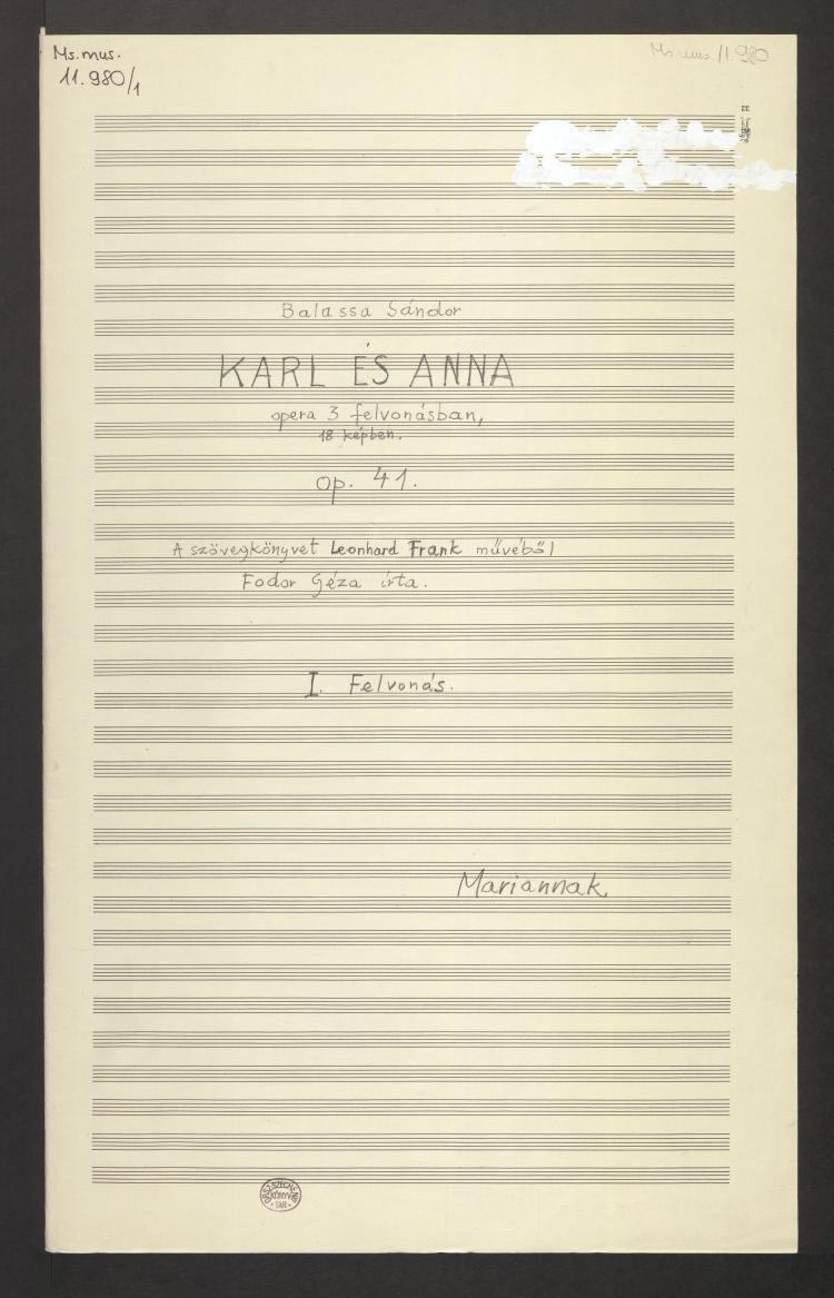 Balassa Sándor: Karl és Anna, Op. 41 (Forrás: OSZK Copia)
