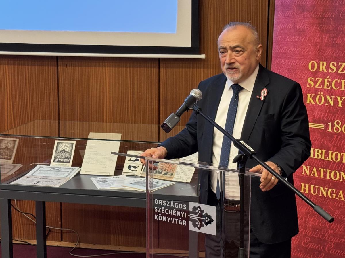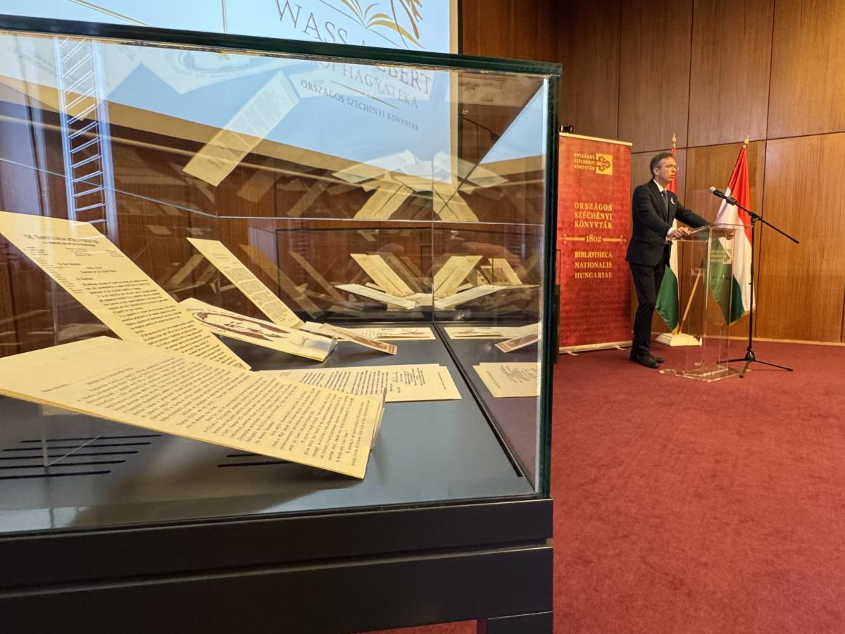 Hankó Balázs kultúráért és innovációért felelős miniszter méltatja a Wass Albert írói hagyaték hazaérkezését (Fotó: OSZK)