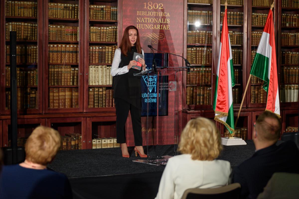 Kiss-Hegyi Anita, a KIM kulturális kapcsolatokért felelős államtitkára (Fotó: Visky Ákos László / OSZK)