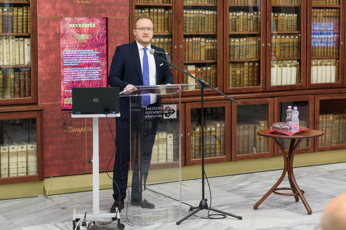 Vincze Máté, a KIM közgyűjteményekért és kulturális fejlesztésekért felelős helyettes államtitkára (Fotó: Visky Ákos László MNMKK OSZK)