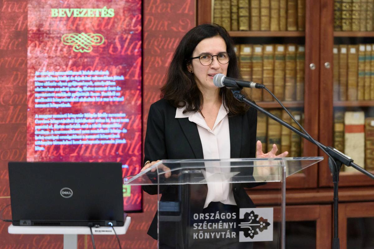 Zsupán Edina, a HUN-REN-MNMKK OSZK Fragmenta et Codices Kutatócsoport, corvinakutató csoportvezető (Fotó: Visky Ákos László, MNMKK OSZK)