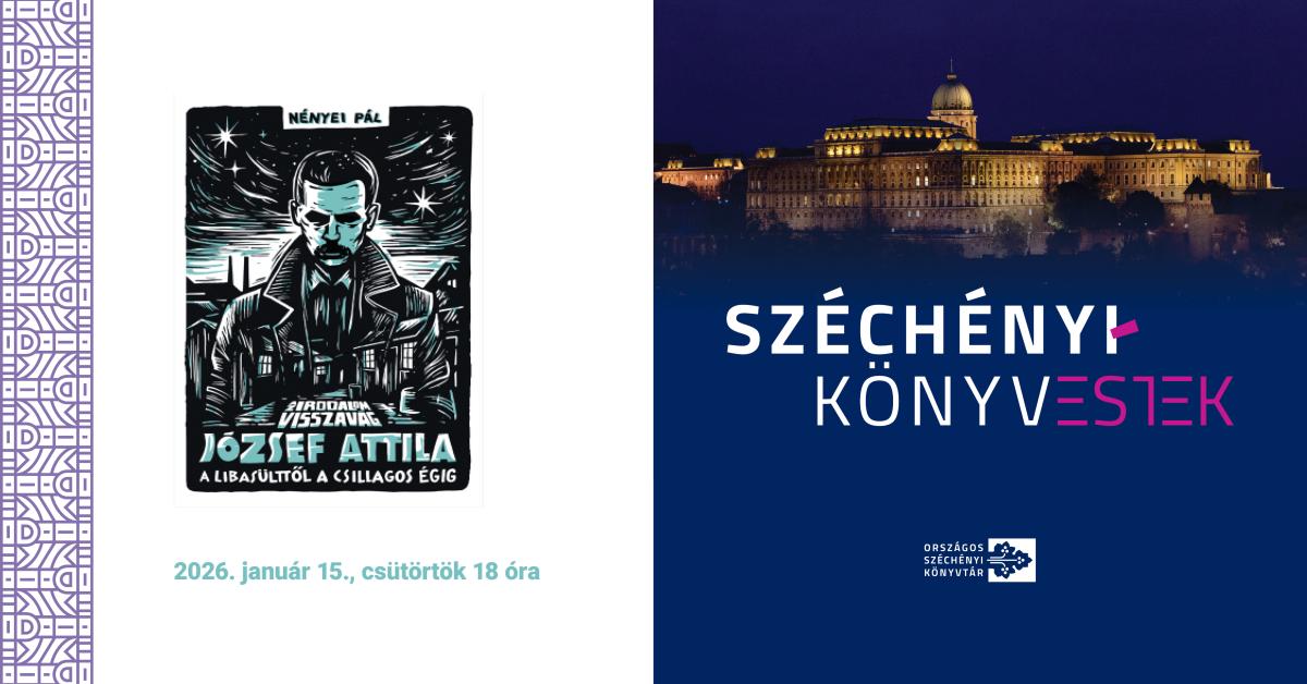Széchényi-könyvestek című programsorozatunk tizenkettedik rendezvényén Nényei Pál író, drámaíró, középiskolai tanár és egyetemi óraadó lesz a vendégünk. 2025 novemberében jelent meg a szerző Az irodalom visszavág című könyvsorozatának ötödik kötete József Attila – a libasülttől a csillagos égig címmel.